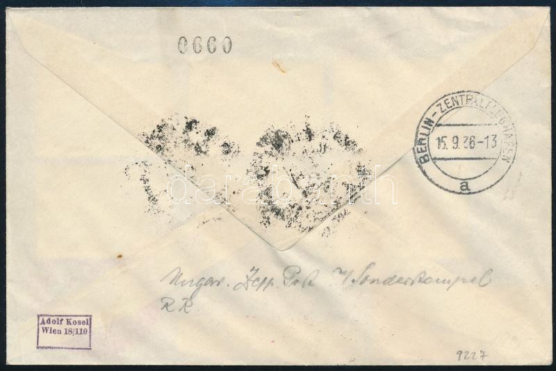1936 Légi levél Berlinbe "LEVÉLGYŰJTŐ SZEKRÉNY UTJÁN ADATOTT FEL" / Airmail cover (Image)(Image 1)