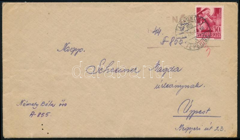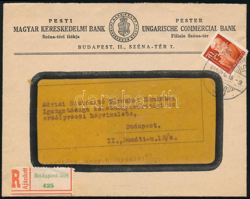 1944 Ajánlott Budapest helyi levél 70f céglyukasztásos bélyeggel / Registered local cover with perfin stamp (Image)(Image 1)