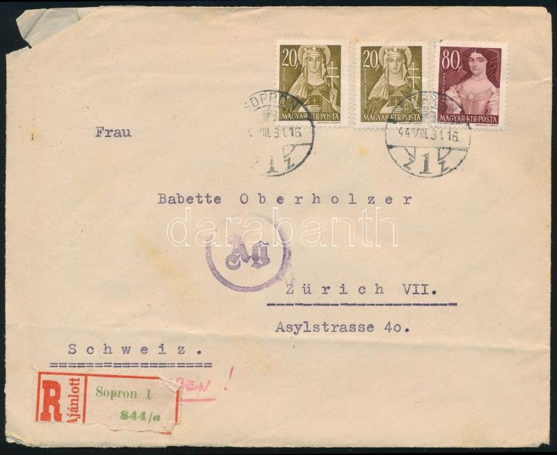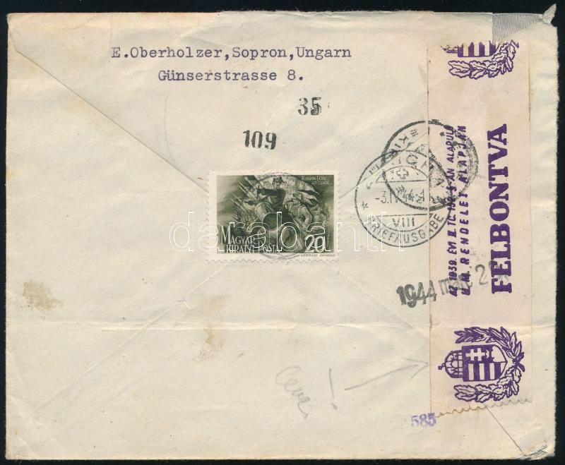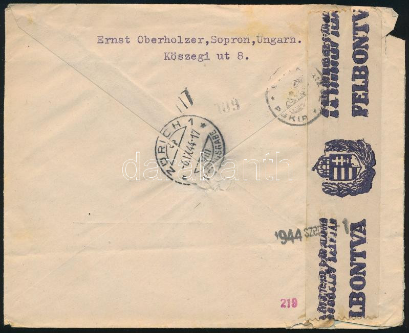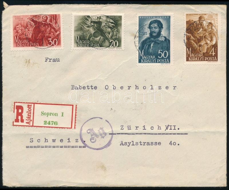 1944 Cenzúrázott ajánlott levél Zürichbe Kossuth sorral / Censored registered cover to Zürich (Image)(Image 1)
