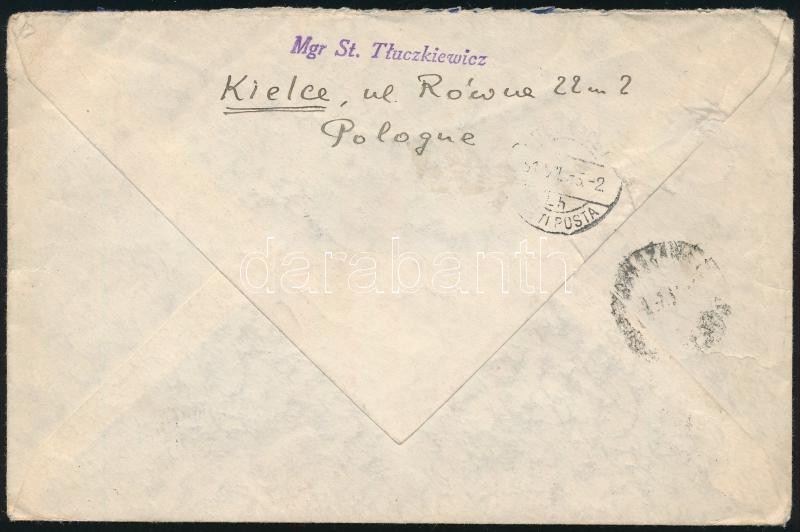 1951 Ajánlott légi levél Budapestre / Registered airmail cover to Hungary with 7 stamps (Image)(Image 1)