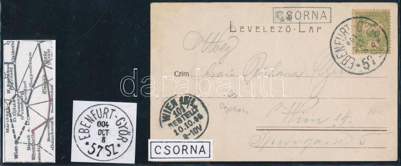 1904 "EBENFURT-GYŐR / 57 SZ" + "CSORNA" (Image)(Image 1)