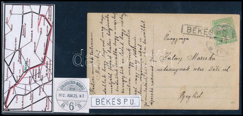 1912 "GYULAFEHÉRVÁR-BUDAPEST / B 6 B" + "BÉKÉS P.U." (Image)(Image