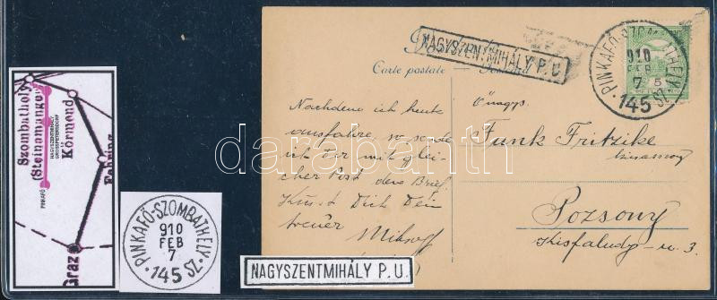 1910 "PINKAFŐ-SZOMBATHELY / 145 SZ" + "NAGYSZENTMIHÁLY P.U (Image)(Image 1)