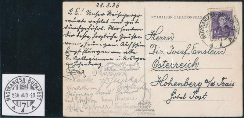 1936 "NAGYKANIZSA-BUDAPEST / A 7 A" (Image)(Image 1)