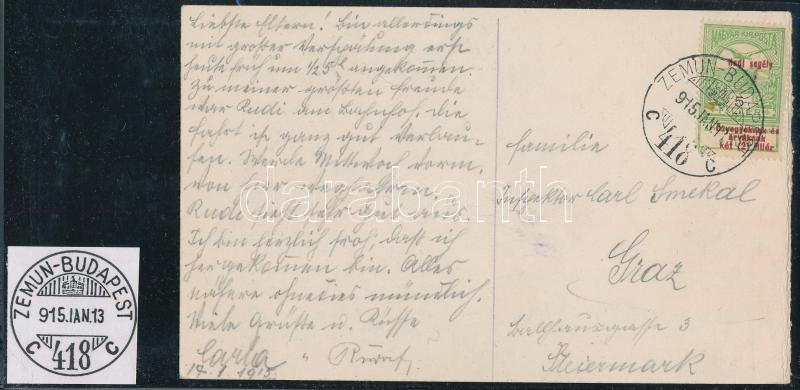 1915 "ZEMUN-BUDAPEST / C 418 C" (Image)(Image 1)