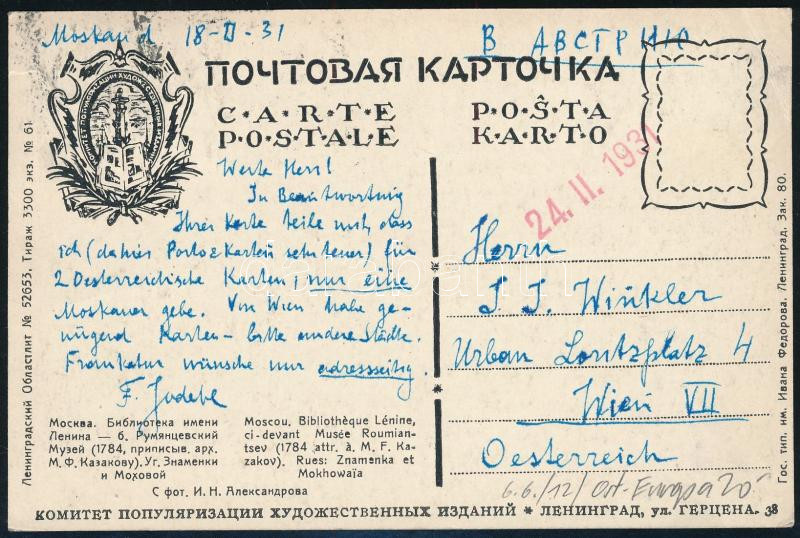 1931 TCV képeslap 3 bélyeggel Bécsbe / TCV postcard to Vienna (Image)(Image 1)