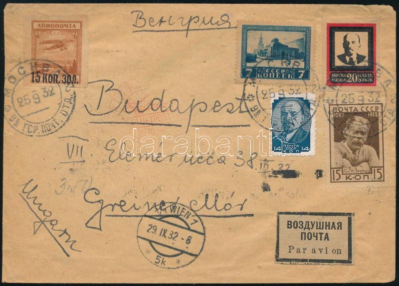 1932 Légi levél Budapestre, Gorkij 15K első napi bélyegzéssel / Airmail cover to Budapest (Image)(Image 1)