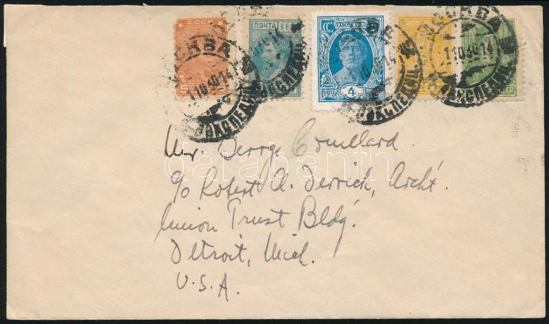 1930 Levél 5 bélyeges bérmentesítéssel az Egyesült Államokba / Cover to the USA (Image)(Image 1)