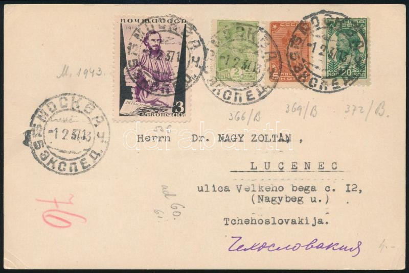 1937 Levelezőlap 4 bélyeggel Csehszlovákiába / Postcard with 4 stamps to Czechoslovakia (Image)(Image 1)
