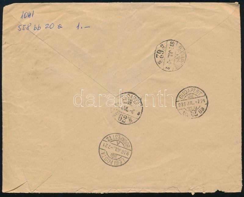 1936 Ajánlott légi levél Budapestre / Registered airmail cover to Hungary (Image)(Image 1)