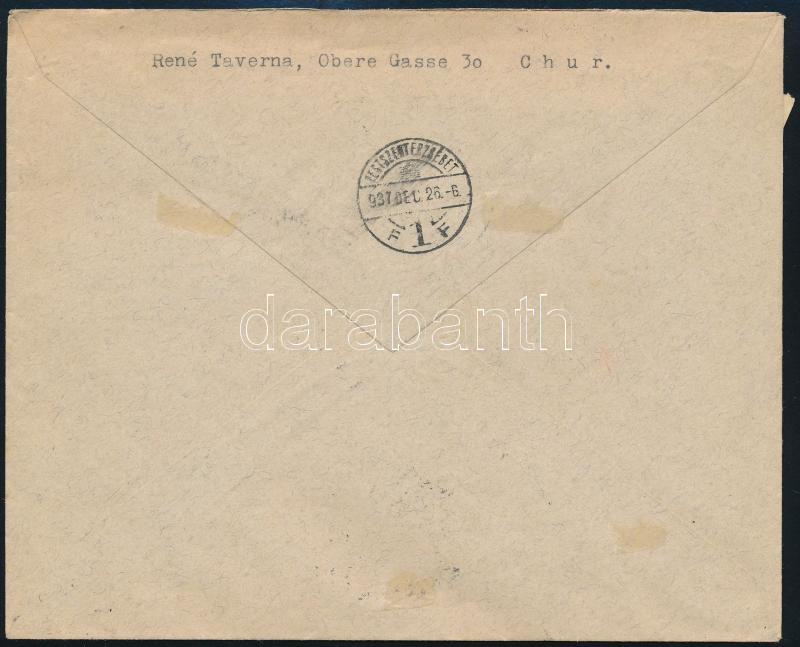 1937 Ajánlott levélen Pro Juventute sor és blokk / Mi 314-317 + block 3 on registered cover (Image)(Image 1)