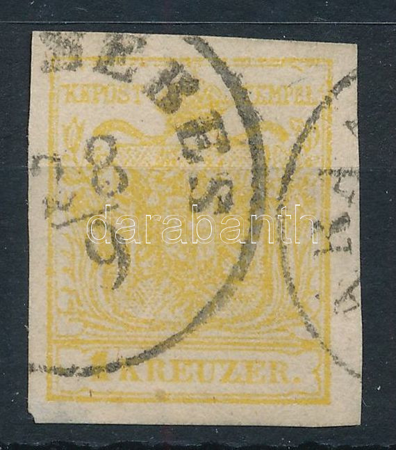 1kr MP.III. krómsárga, Ladurner vízjelrészlettel / 1kr MP.III. chrome yellow, with Ladurner watermark detail Certificate: Ferchenbauer (Image)(Image 1)