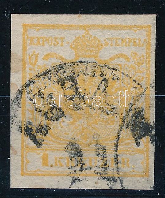 1kr HP III. narancs, ívszéli nyomat szép szélekkel / orange, nice margin piece "PESTH" Signed and identification: Ferchenbauer (Image)(Image 1)