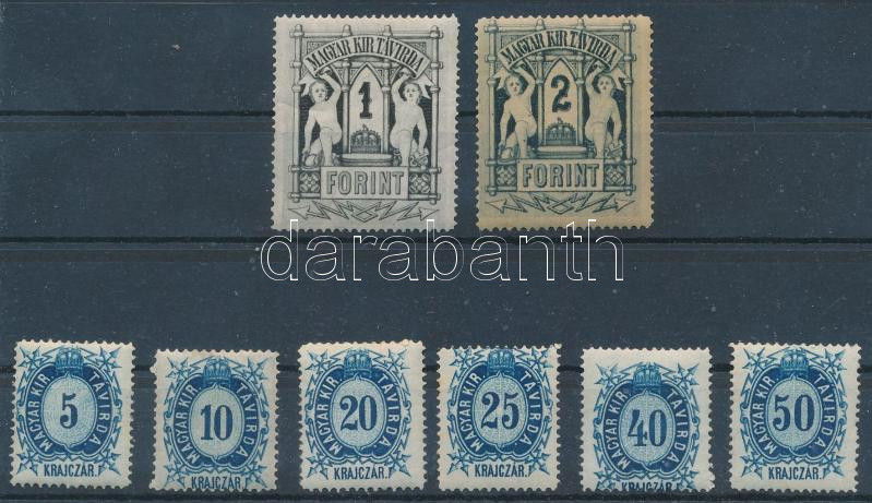 1874 Réznyomat Távírda sor / Mi T 9-16 (25kr falcos / hinged, 1Ft ráncok / creases) (Image)(Image 1)