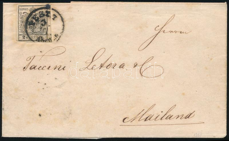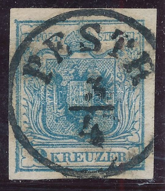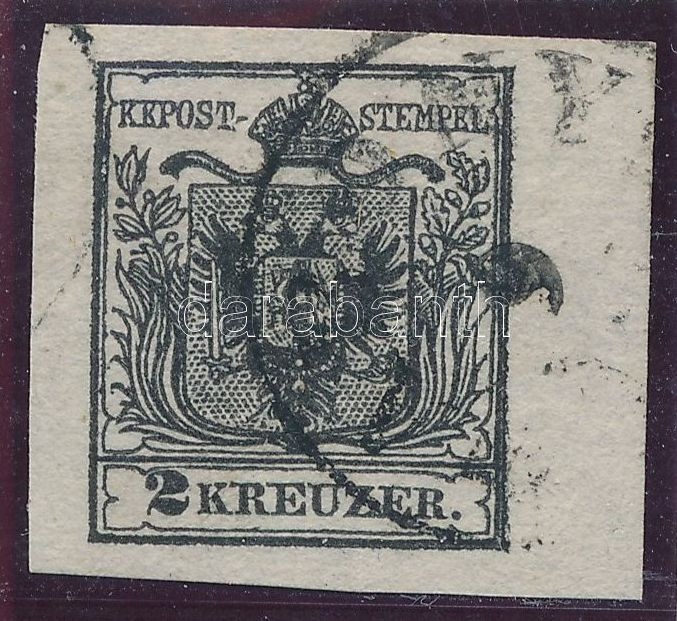 2kr fekete HP Ib. ívszéli nyomat, szép friss darab / margin piece "PESTH" Certificate: Ferchenbauer (Image)(Image 1)