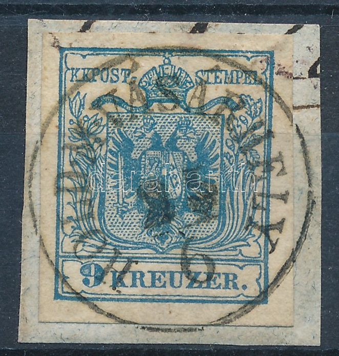 9kr HP IIa, jobb alsó letört sarok / plate flaw "PESTH" Certificate: Huber (Image)(Image 1)