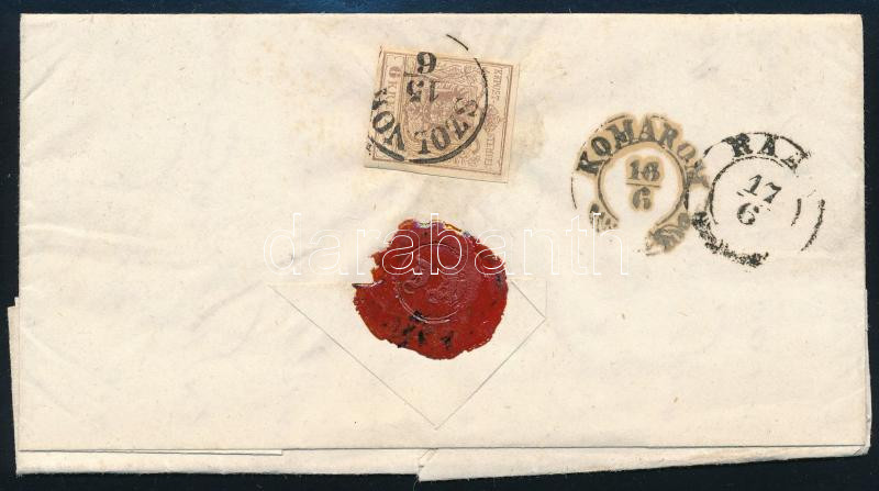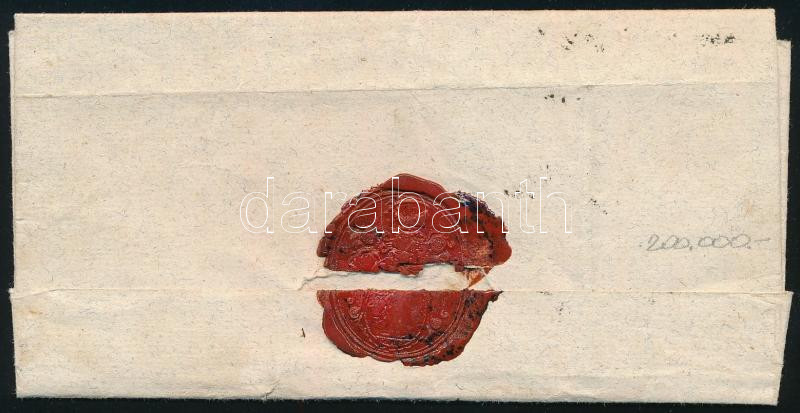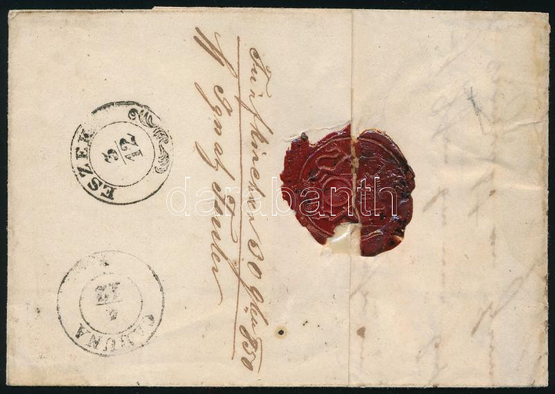 1853.10.21. Helyi levél HP 2kr szürkésfeke bélyeggel bérmentesítve, viaszpecséttel lezárva. Luxus minőség (200.000) / Local cover with HP 2kr franking "PESTH"
