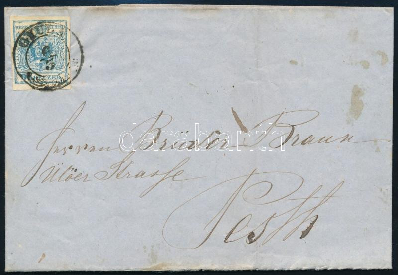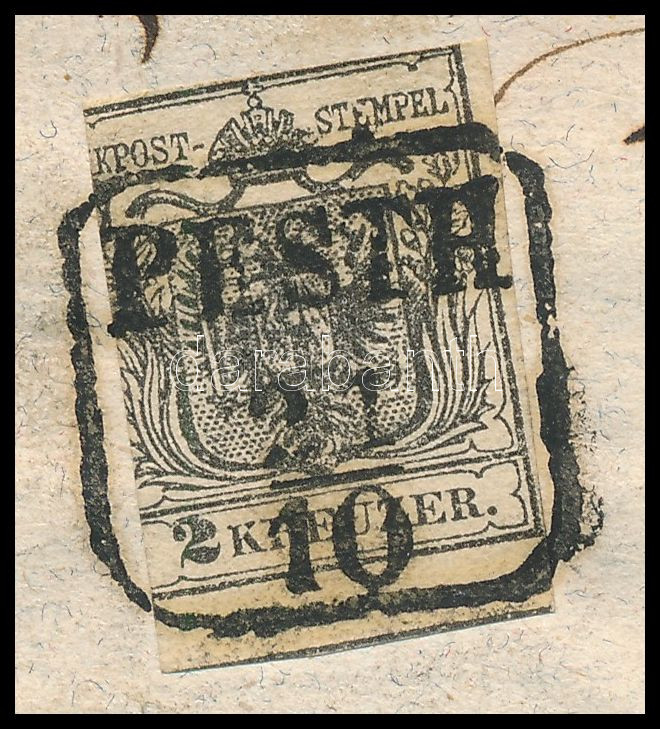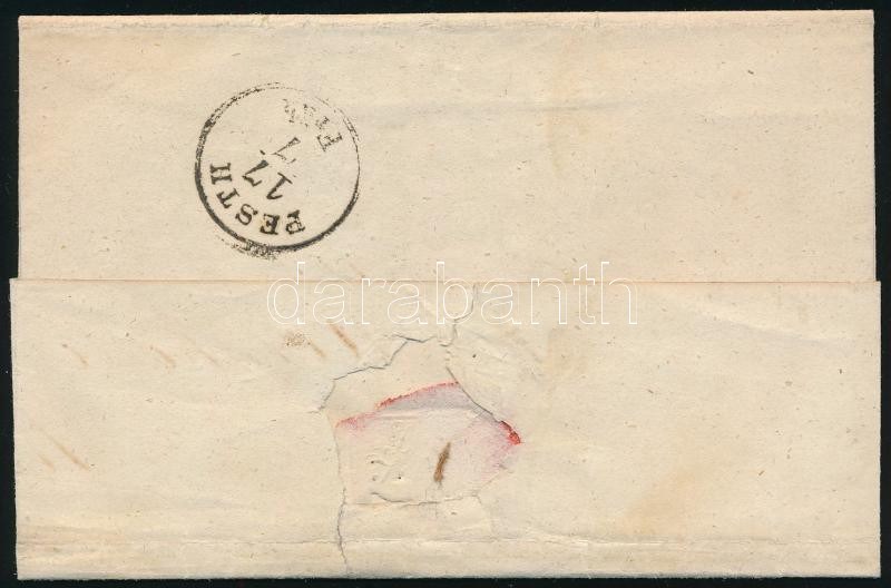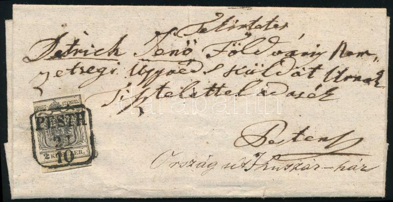 2kr mélyfekete HP Ib, a bélyeg felragasztása előtt kis sarokhiány, kiemelt középrésszel! helyi levélen teljes tartalommal "PESTH" hibás bélyegzéssel, a dátum hiányzik! Látványos, szép, érdekes darab! / 2kr deep black HP Ib., highlighted middle part,