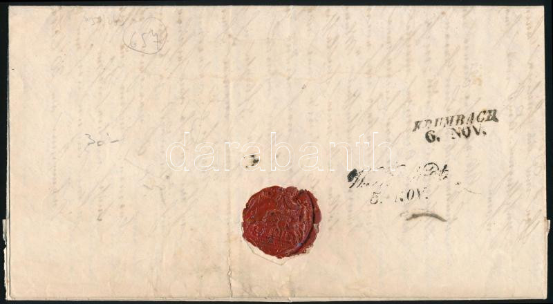 ~1850 Ex offo levél 6kr bérmentesítéssel / Ex offo cover "MALACZKA" - "KRUMBACH" (Image)(Image 1)