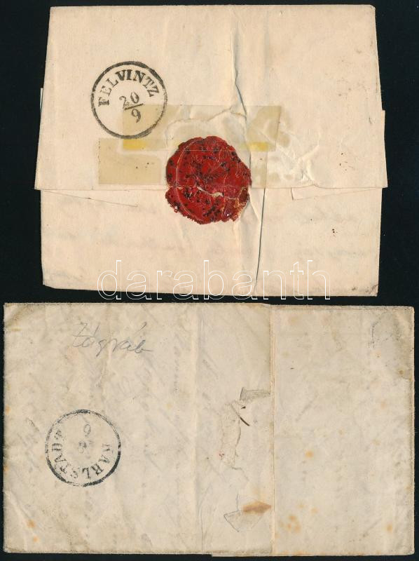 2 db levél 3kr bérmentesítéssel / Mi 3 on 2 covers, "AGRAM" - "KARLSTADT" + "KLAUSENBURG" - "FELVINTZ" (Image)(Image 1)