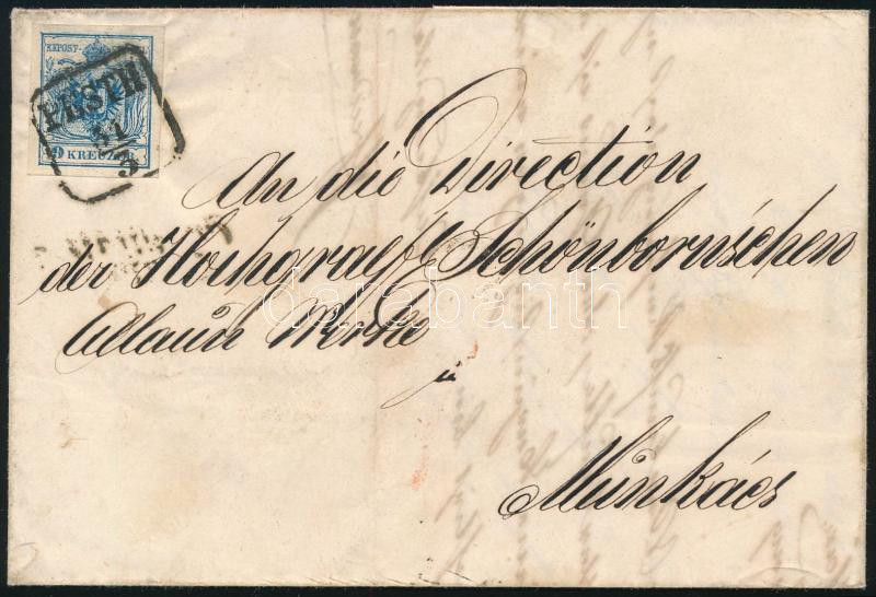 1854.03.31. Távolsági levél kézi 9kr bérmentesítéssel / Domestic cover with HP 9kr franking "PESTH" - "MUNKÁCS" (Image)(Image 1)