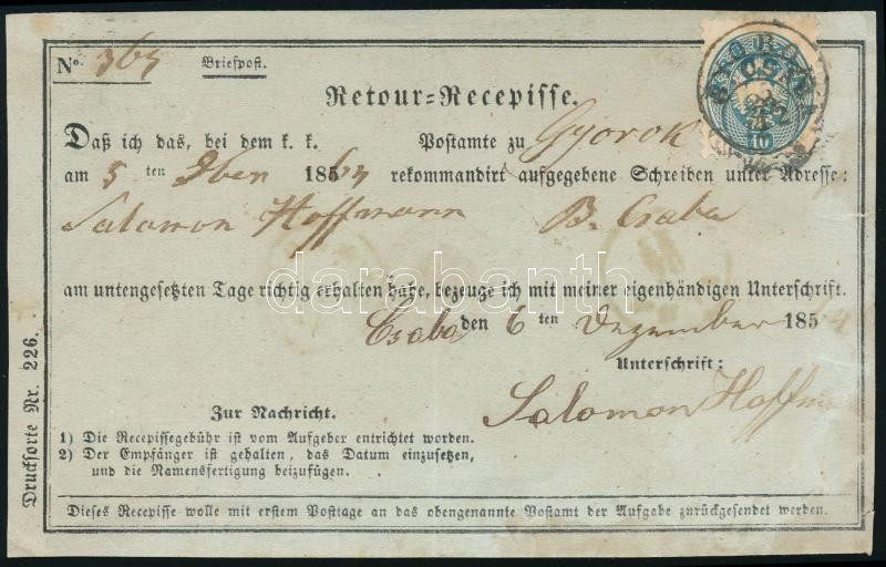 10kr tértivevényen / on Retour Recepisse "GYOROK" + "B.CSABA" (Image)(Image