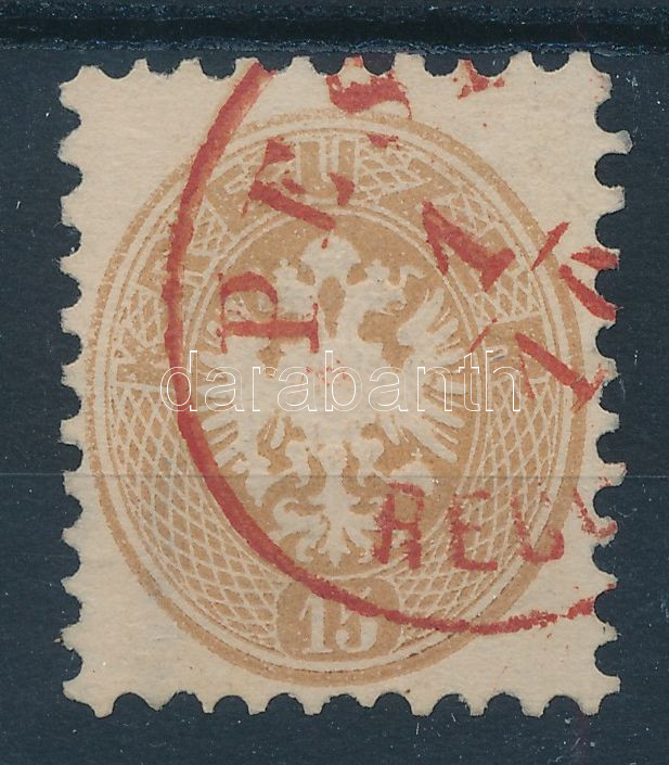 1864 15kr vízjellel / with watermark, piros / red "PEST / RECO(MMANDIRT)" (Image)(Image 1)