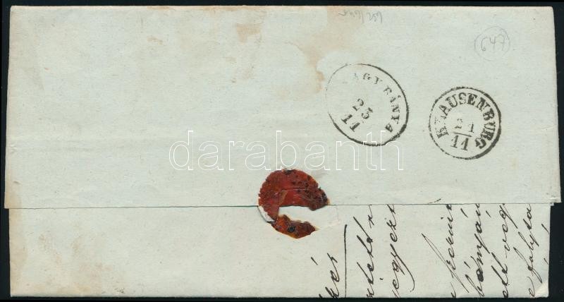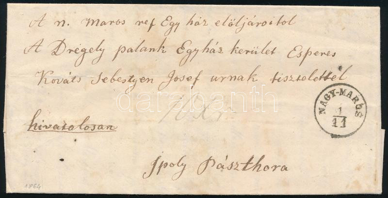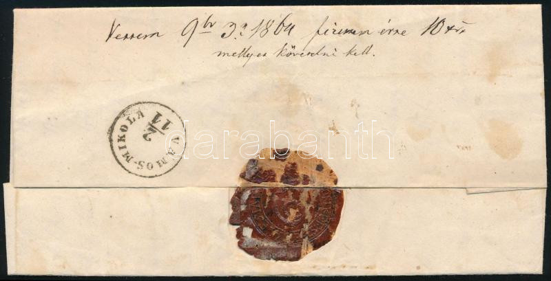 1864 Komplett portós levél 10kr portóval / Unpaid cover "NAGY-MAROS" - "VÁMOS-MIKOLA" (Image)(Image 1)