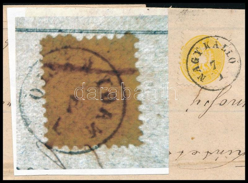1865 Nyomtatvány 2kr bérmentesítéssel "NAGY KÁLLÓ" - Balkány, a felragasztott bélyeg 2 darabból áll, a posta kárára elkövetett csalás! (mellékelve egy kép, ami bizonyítja) 1865 Printed matter with 2kr, the stamp consists of 2 pieces, a
