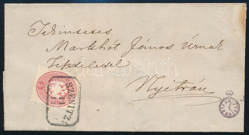 ~1865 5kr levélen / on cover "SZENITZ" - Nyitra (Image)(Image