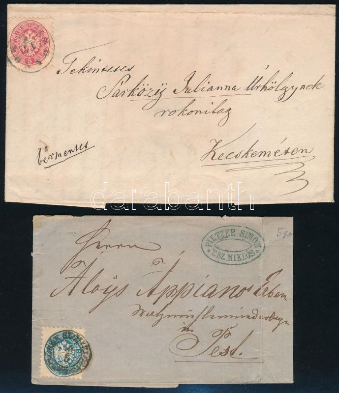 1864 2 db levél, egyik 5kr a másik 10kr bérmentesítéssel / 2 covers (Image)(Image 1)