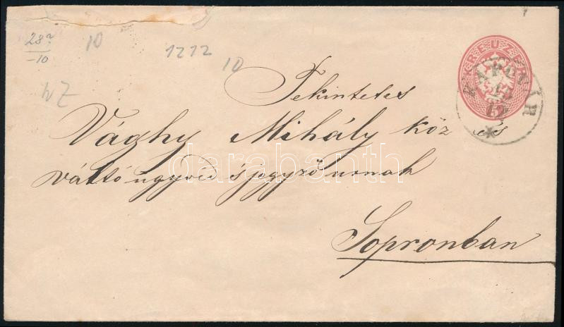 ~1864 5kr díjjegyes levél / PS-cover "KAPUVÁR" - Sopron (Image)(Image 1)