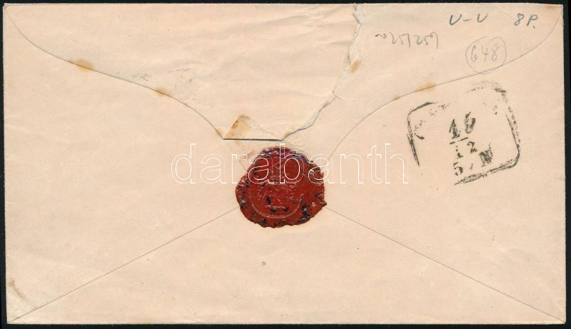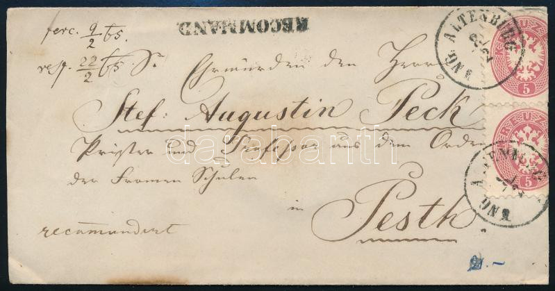 1864 2 x 5kr (pár) a függőleges oldala a boríték jobb oldalán hátra hajtva + 2 x 5kr hátoldalon ajánlott levélen / 2 pairs on registered cover "UNG:ALTENBURG" - "PESTH" (Image)(Image 1)