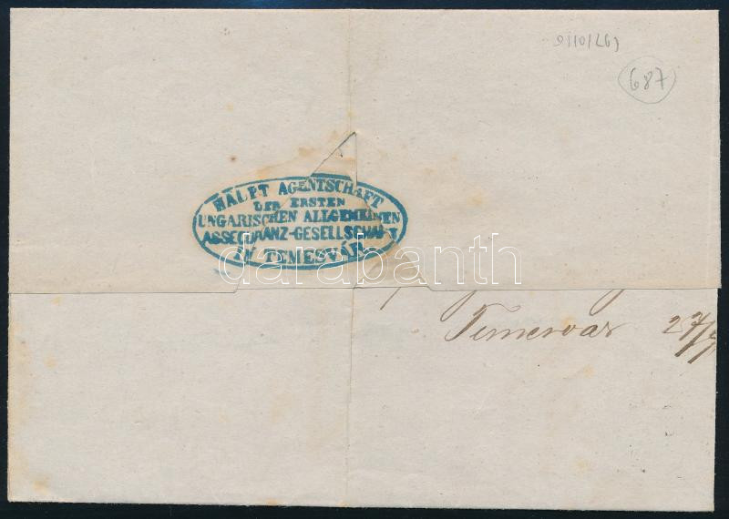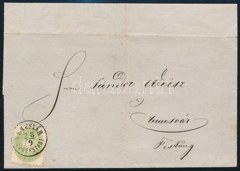 ~1864 3kr helyi levélen (hajtott) / on local cover, "TEMESVÁR / JOSEFSTADT" (folded) (Image)(Image 1)