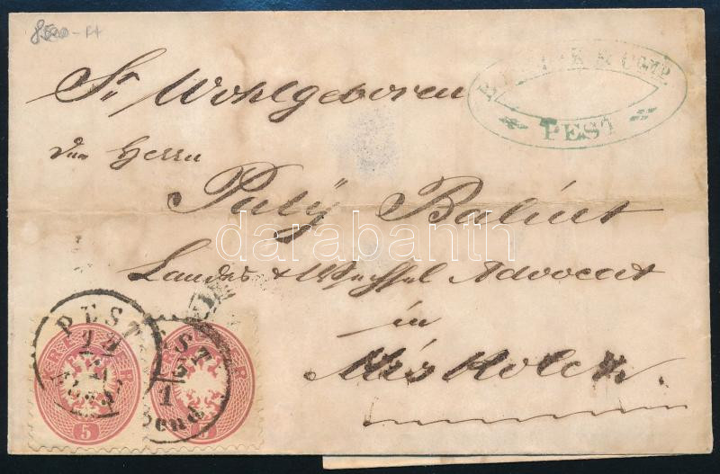 1865 2 x 5kr levélen / on cover "PEST / Abend" (Image)(Image