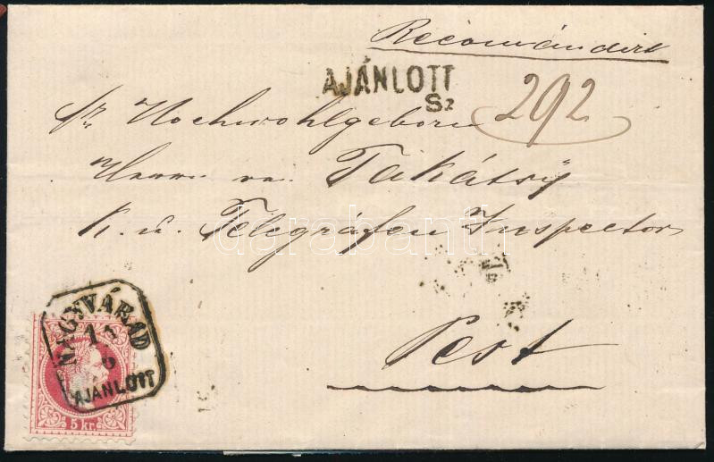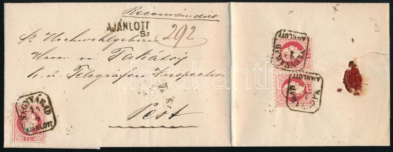 3 x 5kr távolsági ajánlott levélen / on domestic registered cover "NAGYVÁRAD / AJÁNLOTT" (Image)(Image 1)