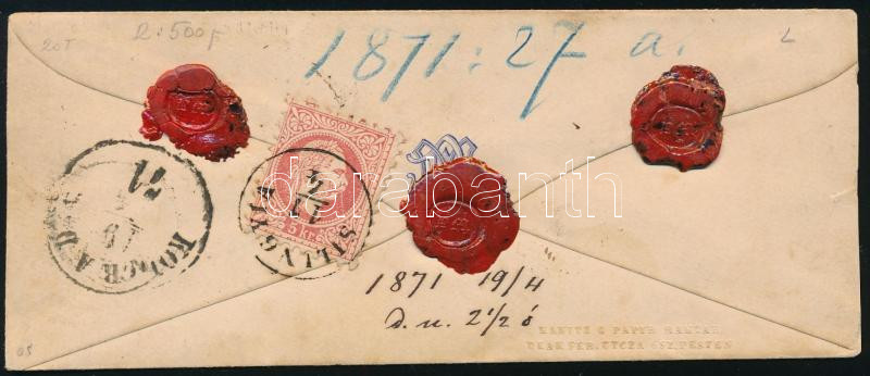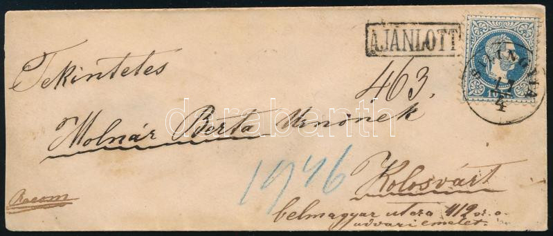 Kis alakú ajánlott levél előoldalán 10kr, hátoldalán 5kr bérmentesítés / 10kr + 5kr on registered cover "SILINGYIA" - Kolozsvár (Image)(Image 1)