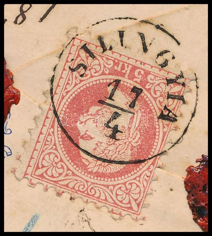 5kr látványos lemezhibával levélen. Nagyon ritka! / 5kr with plate flaw on cover, RR! "SOPRON / OEDENBURG" (Image)(Image 1)