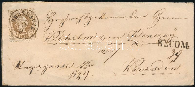 15kr ajánlott levélen / on registered cover "OROSLAVJE" - Warasdin (Image)(Image
