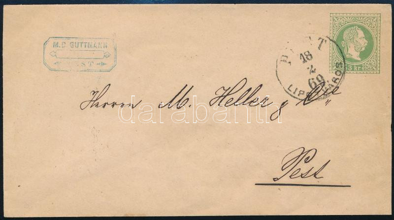 3kr díjjegyes boríték helyi levélként / 3kr PS-cover "PEST / LIPÓTVÁROS" (Image)(Image 1)