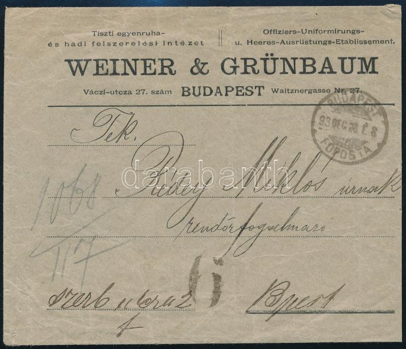 1893 Portós levél Rédey Miklósnak címezve, aki ekkor még csak "rendőrfogalmazó" volt / Unpaid cover "BUDAPEST / FŐPOSTA" (Image)(Image 1)