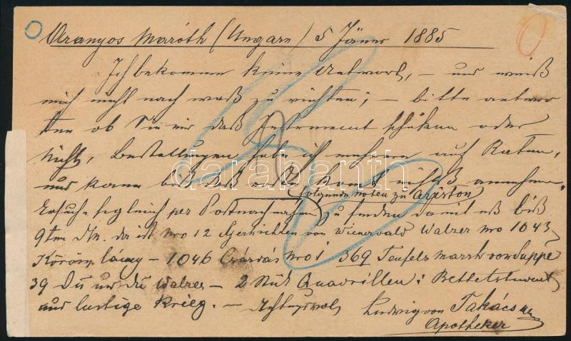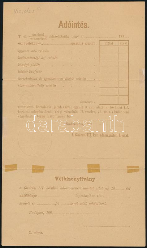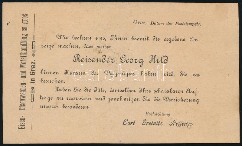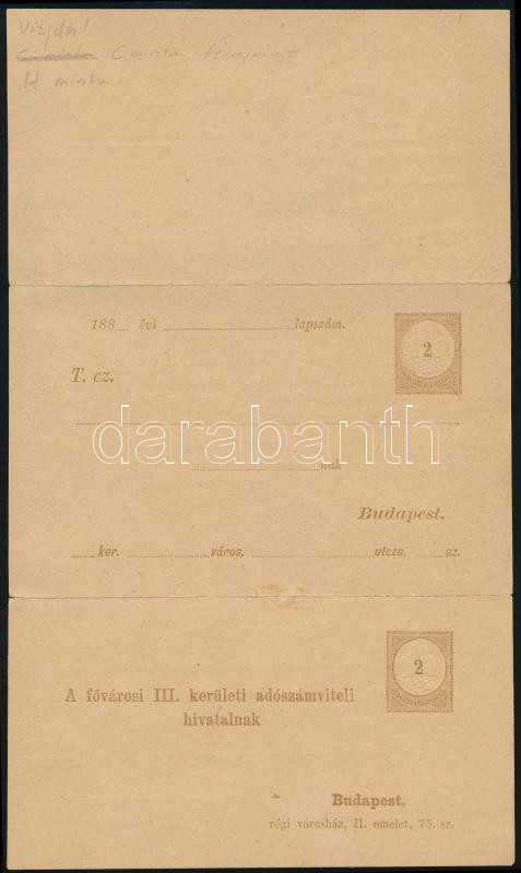 1884 Háromrészes adóintéses használatlan levelezőlap (javított) / Unused printed matter (repaired) (Image)(Image 1)