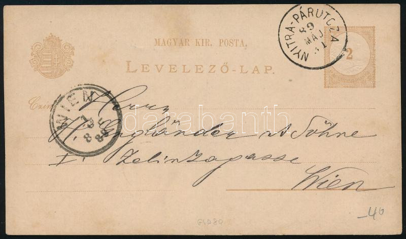 1889 2kr díjjegyes levelezőlap / PS-card "NYITRA-PÁRUTCZA" - Wien (Image)(Image 1)
