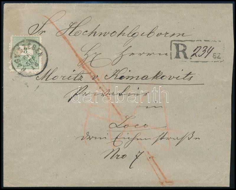 1886 3kr és 5kr ajánlott levélen / on registered cover "NAGY-SZEBEN" (Image)(Image 1)