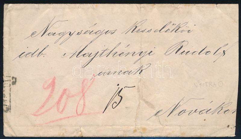 1882 Levél hátoldali 5kr + 10kr bérmentesítéssel / Cover with 5kr + 10kr franking, "NYITRA-NOVÁK" (Image)(Image 1)
