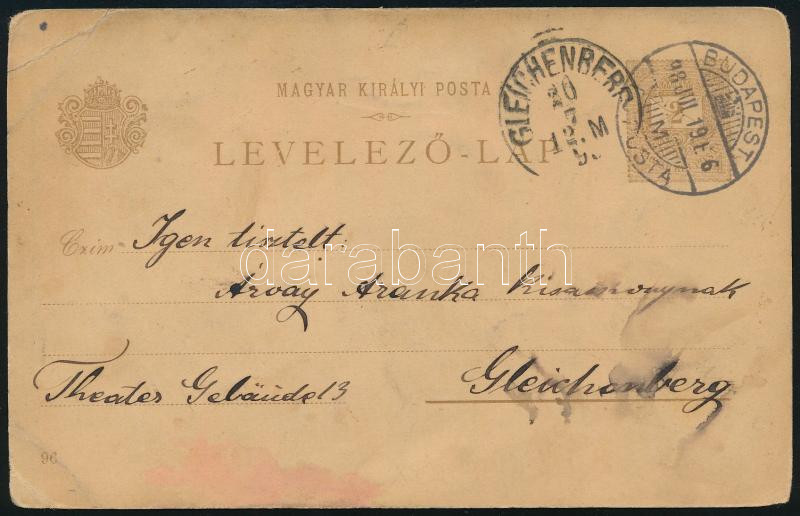 1896 Millenniumi díjjegyes levelezőlap (Szt. Asztrik) "BUDAPEST" - "GLEICHENBERG" / 2kr millennial PS-card "BUDAPEST" - "GLEICHENBERG" (Image)(Image 1)