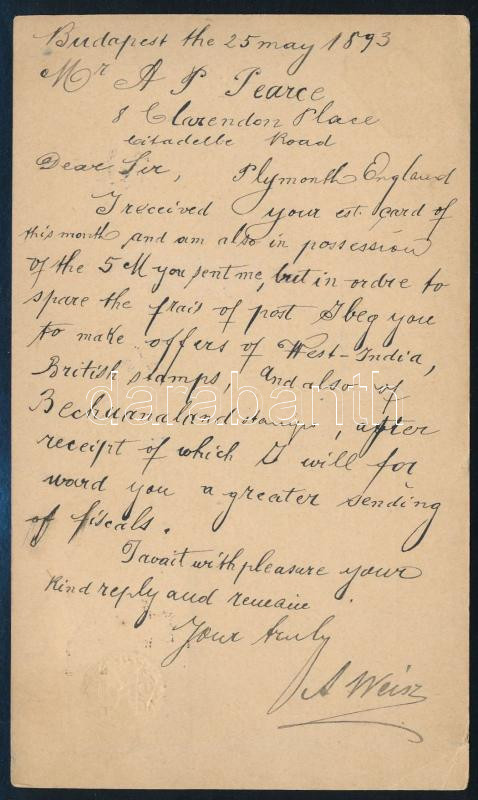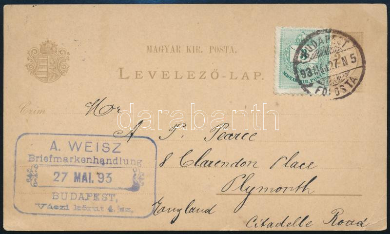 1893 2kr díjjegyes levelezőlapon 3kr, Angliába küldve (Image)(Image