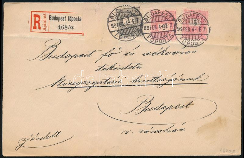 1899 Budapest helyi ajánlott levél 11kr bérmentesítéssel / Local registered cover (Image)(Image 1)