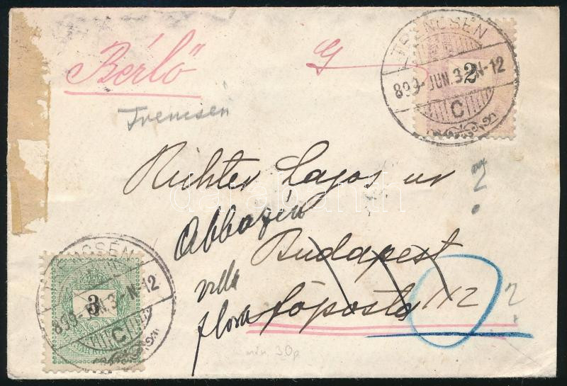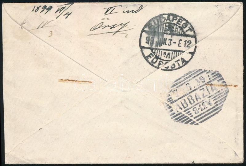 1899 2kr és 3kr levélen Budapestre, majd továbbküldve Abbáziába "TRENCSÉN" / 2kr + 3kr on cover to Budapest, redirected to Abbazia (Image)(Image 1)