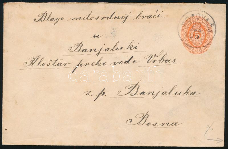 1899 5kr díjjegyes boríték / PS-cover "POPOVACA" (Image)(Image